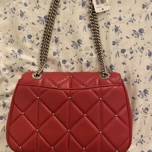 RARE Red Leather Coach Diamond Quilted Silver Studded Crossbody Handbag Purse