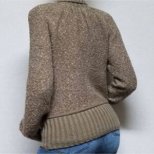 Rare Vintage Retro Moda International Brown Popcorn Boucle Wool Blend Ribbed Button Up Cardigan.
