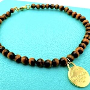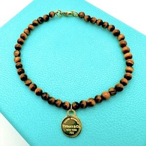 RARE Return to Tiffany & Co 18K Yellow Gold Tigers Eye Bracelet 7” Packaging
