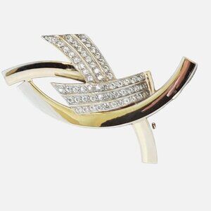 Just a beautiful bright excellent condition statement pin. Given the weight of 30 grams and a prelim test I think this might be gold plated. Excellent vintage condition - no marks, no scratches, stones appear tight and all are very bright and the c clasp works well. Very hard to get a photo to show how bright and sparkly it as, so there are lots of photos. Nice size and weight.