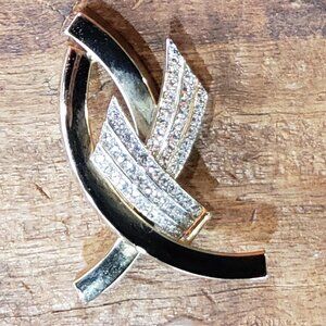 RARE Rhinestone Crystal AIDS Ribbon or Ichthys Fish Christian Pin Brooch Gold Pl