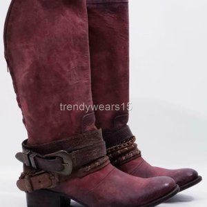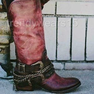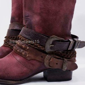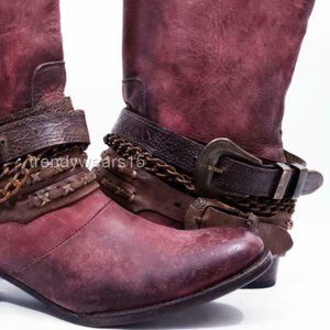 WINE DISTRESSED BOOTS, BELTS, CHAINS!!
