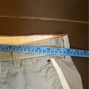 Rare and fabulous Murphy & Nye sailing pants perfect for any casual or sporty occasion. With a stylish blue and white striped seer sucker color and sailing-themed accents, they're great for yachting or other water sports.