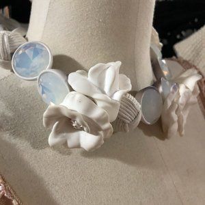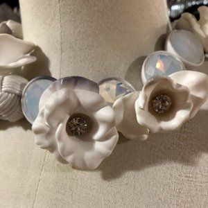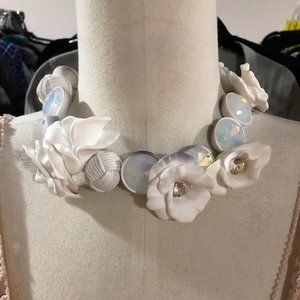 RARE SIGNED J CREW STATEMENT LG WHITE BRULEE RUBBER FLOWER CRYSTAL NECKLACE