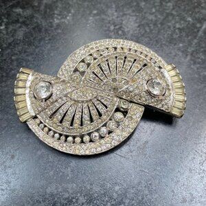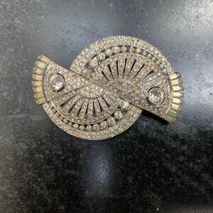 RARE SPECTACULAR DESIGN!, AUTHENTIC VINTAGE ART DECO CLIP MATES BROOCH / PIN - FULLY FUNCTIONAL, SEPARATES INTO TWO DRESS CLIPS - SEE PHOTOS.