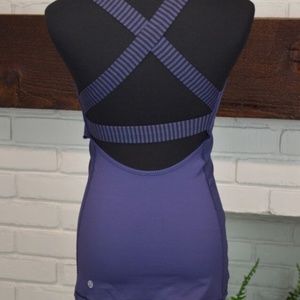 RARE STYLE Lululemon Core Kicker Tank Criss Cross Strap Stripe Cadet Blue Purple