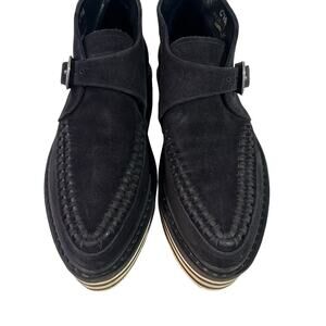 Striped platform Creepers, Vero Cuoio Made in Italy, Leather/Suede, Silver Monkstrap buckle.