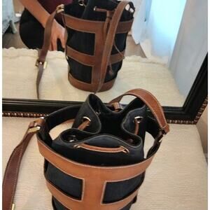 Salvatore Ferragamo Leather Designer Mini Bucket Bag Rib Cagec Brass Feet RARE Black Lining Vintage Collectible Wearable