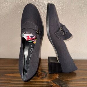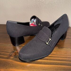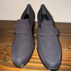 RARE Sample Women's Black Calico Slip on Block Heeled Shoes Size 6 Office Goth
