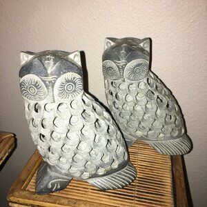 RARE Sandstone Owl Book ends Made in India - Gorgeous office closet