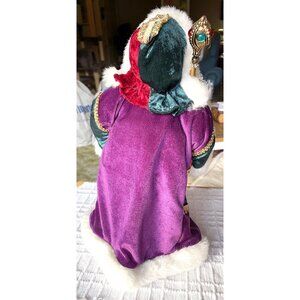 RARE Santa Claus Figurine With Staff In Red & Purple Velvet Robe With Gold Accen