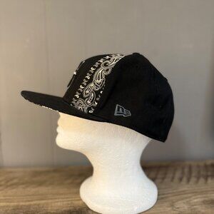 RARE Seattle Mariners Black & White Paisley New Era Fitted Hat Size 7 3/8 MLB