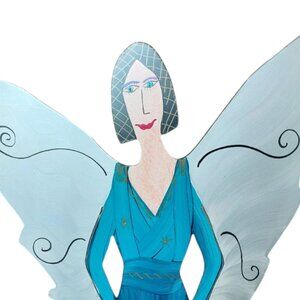RARE "Signed” Claudine Buell Hand Painted Angel Metal Art Sculpture