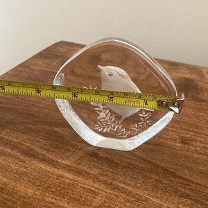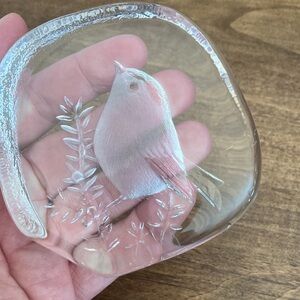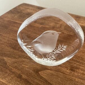 RARE Signed Mats Jonasson Etched Bird Wren Crystal Glass Paper Weight, 9194