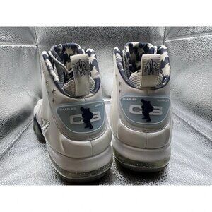 This rare Nike Barkley Foam Posite Max Premium QS USA Olympics sneaker in size 13 features a unique design with a high-top lace-up closure and a white leather upper. The shoe boasts a solid pattern with glow-in-the-dark accents, perfect for casual or activewear use. With cushioned comfort and a rubber outsole, this Nike Foamposite model from 2014 is built for performance in activities like walking, boxing, or basketball. The patriotic USA theme and iconic Nike branding make this sneaker a standout piece in any sneaker collection.