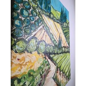 This calm wine country landscape is reproduced for years of enjoyment in your home. The realistic reproduction of the original masterpiece features textured brushstrokes, evoking the feeling of fine art. Gallery-wrapped canvas so no frame required.