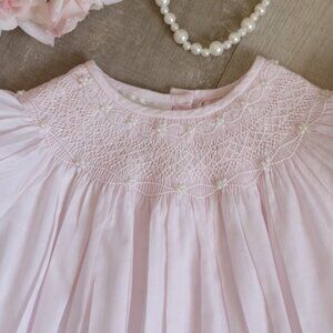 RARE Strasburg Dress Pink Bishop Float With Pearls Smocked 12 Months NWT
