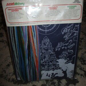 RARE Sunset Stitchery Vintage Christmas Kit Enchanted Forest 1980 #2083
