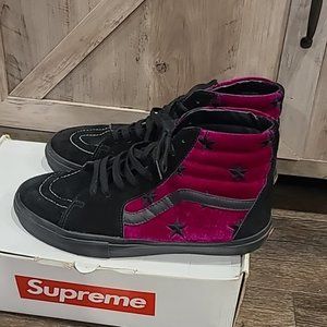 🔥RARE Supreme X Vans Sk8-Hi Velvet Stars Pink Black Mens