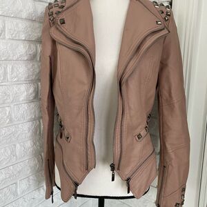 Faux Leather Punk Studded Jacket. Mauve coloring with leopard lining. Has insane zipper detailing. Such a statement piece!