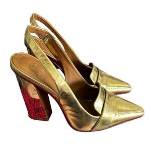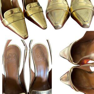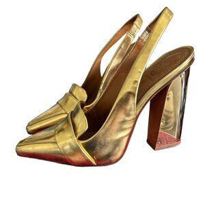 RARE TORY BURCH SADIA GOLD MIRROR SLING BACK HEEL SANDALS SZ. 6.5