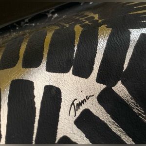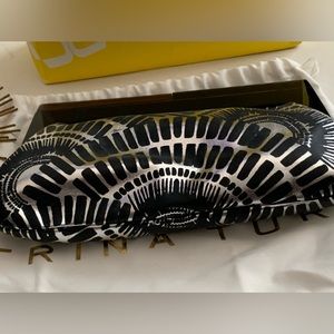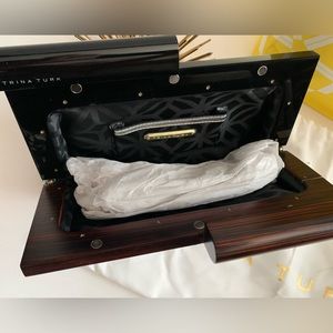 ✨RARE✨ TRINA TURK METALLIC LEATHER + WOOD Clutch Bag Purse NEW