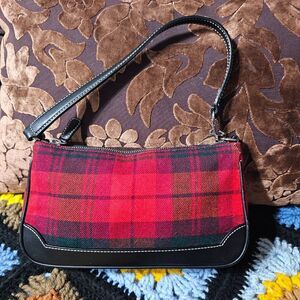 RARE red and black Tartan y2k Coach Demi Shoulder Bag. Limited edition with scalloped edge leather.