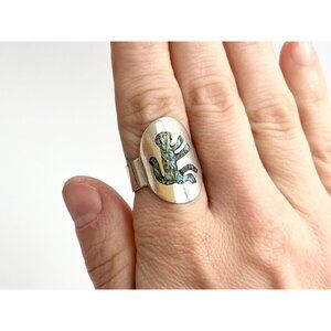 RARE Taxco Mexico Made Monkey Abalone 925 Sterling Silver Vintage Ring - sz 8