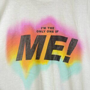 Rare Taylor Swift ME! white short sleeve t-shirt with rainbow watercolor splash graphic and "I'm the only one of me" lyrics printed on the front. Official merch from the 2019 Lover era. Fabric is somewhat see-through.