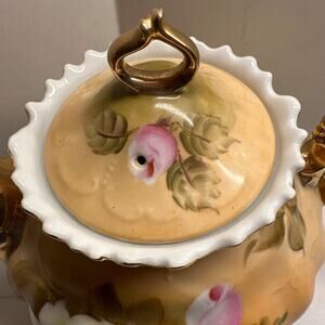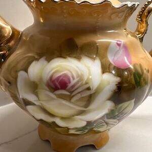 RARE Teapot & Lid Heritage Brown Floral Lefton 3112 6 Cup 6" high Discontinued
