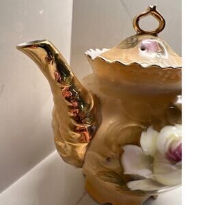 RARE Teapot & Lid Heritage Brown (Floral) by Lefton 6 Cup 6" high Discontinued