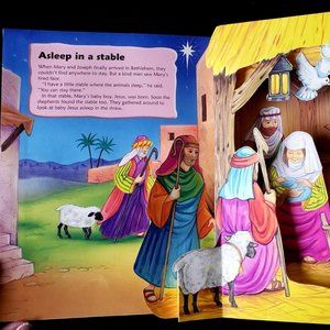 Tags: christmas, xmas, holiday, season, seasonal, church, vintage, religion, religious, birth, jesus, mary, joseph, christmas story, baby, 3D, pop-up, book, unique, rare, bible story