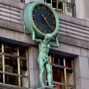 Made to represent the statue built on the Tiffany building in 1853. This Atlas does not bend under his burden, but stands upright and dignified. The left foot is poised to take a step off the statue’s base.