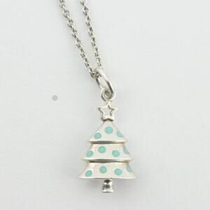 RARE Tiffany & Co Christmas Tree in Blue Enamel and Silver Pendant Necklace