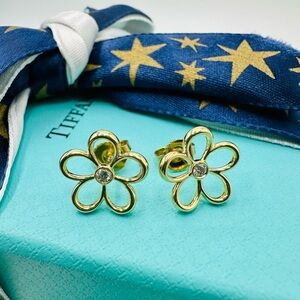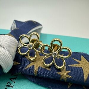 RARE Tiffany & Co. Diamond 18K Yellow Gold Garden Flower Earrings with Packaging