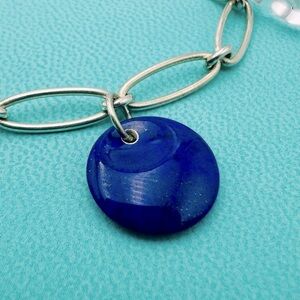 Stunning, breathtaking piece - crafted in sterling silver and features beautiful gemstones - jasper bean, nephrite (green jade) eternal circle, disc lapis lazuli, crystal teardrop, and sterling silver apple.