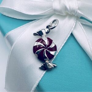 Beautiful, super rare Tiffany candy charm crafted in sterling silver and red enamel.