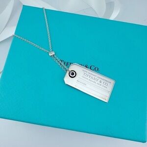 A beautiful charm necklace to tell part of Tiffany's great history. The first tiffany location, in NYC's union square neighborhood, had an "impenetrable" safe deposit box. When they moved from that location the door went with it. This piece is in reference to the filing system. The black ring on the tag is onyx gemstone.