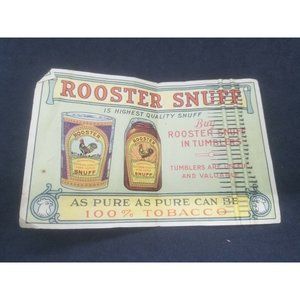 Rooster snuff was one of the big turn of the century snuff companies based in Nashville Tennessee. Research indicates Rooster snuff was manufactured in tins and glass jars. These appear to be a giveaway item, but I was unable to determine with what they would have been given. At the time these were made, they were apparently the largest manufacturer of snuff in the world.