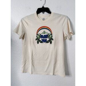 RARE Tory Burch Olive You Rainbow Women's T Shirt Size M Cream Made in Peru