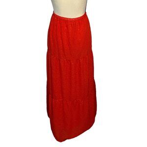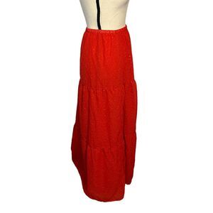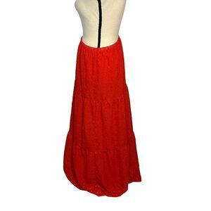RARE True Beauty By Emme Womens Long Tiered Lined Skirt Red Eyelet Lace Size 14