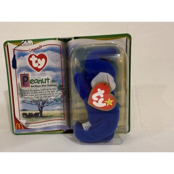 Ty Teenie Beanie Baby Legends Peanut the Retired Royal Blue Elephant New Rare.