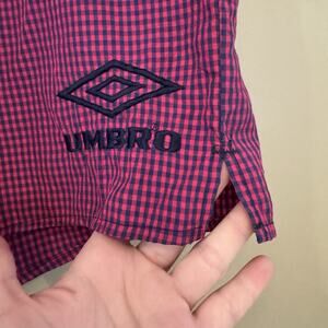 RARE! UMBRO x VINTAGE Shorts Medium Nylon USA Made Soccer Pink Navy Plaid