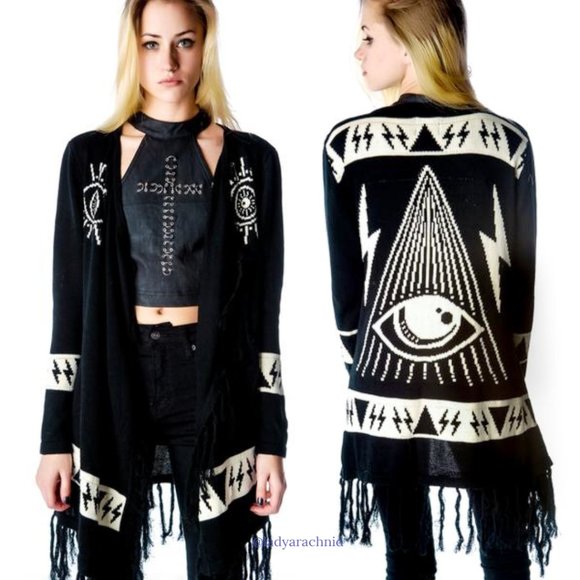 Originally sold on Dolls Kill and Revolve. Highly coveted style! Excellent condition with no visible signs of wear. Approximately 21 inches pit to pit with the front closed, sleeves 22 inches from shoulder seam to wrist, 20" across the shoulders in back. Katie Loo is 5'7" for reference. NOTE: care/fabric tag is completely faded, this usually happens after dry cleaning. Per the Revolve website fabric is 100% acrylic and dry cleaning is recommended. Smoke free home but we do have pets. BIN40