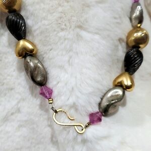 RARE UNIQUE CHUNKY STATEMENT BEAD NECKLACE HEAVY HEARTS ROCKS GEMS HEAVY