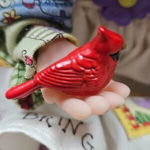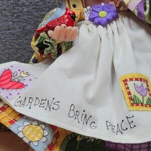 RARE UNIQUE Granny Garden Doll Artist Made Red Hair Cardinal Patchwork Dress