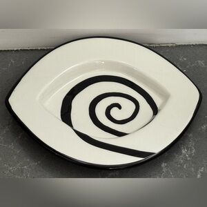 Stylish black and white swirl mug with matching saucer. Perfect for coffee or tea lovers.