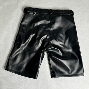 RARE VELMONTU Black Faux Leather High-Waisted Bermuda Shorts LARGE