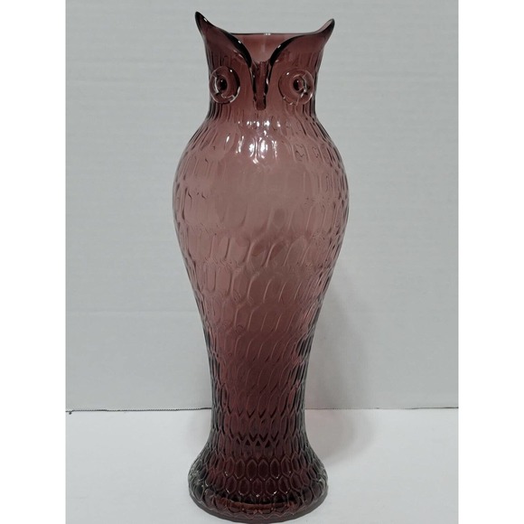 RARE VINTAGE ART GLASS LARGE OWL BIRD VASE PURPLE 14 1/4" Tall In Excellent Condition! NO CHIPS NO CRACKS NO REPAIRS, JUST PURE BEAUTY.....