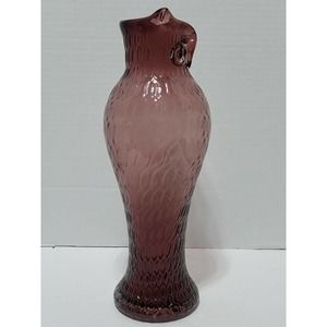 RARE VINTAGE ART GLASS OWL BIRD VASE PURPLE 14 1/4" Tall In Excellent Condition